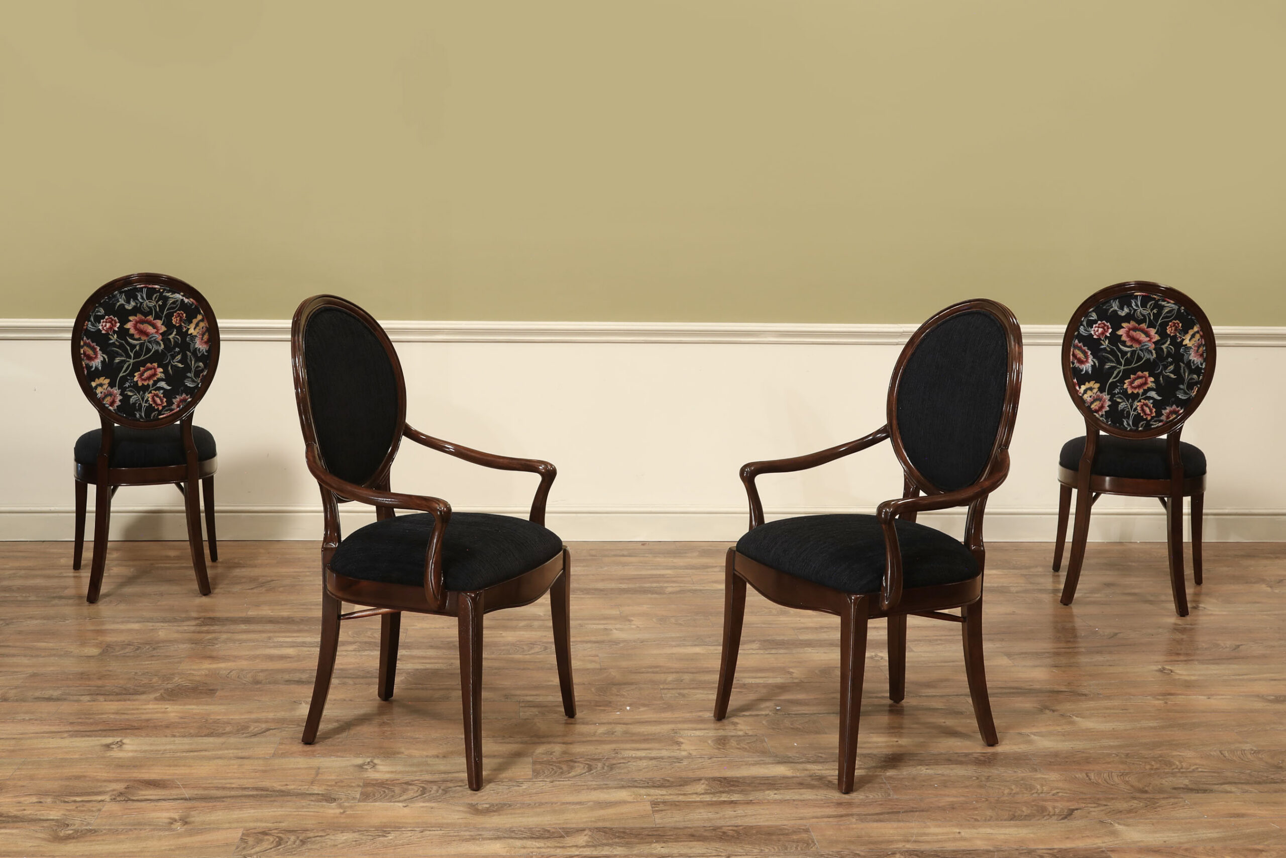 Measurements: Armchair 25 1/4″W X 23 7/8″ D x 42.5″H, Sidechair 20 1/4″W X 22 3/4″ D x 42.5″H, Seat Frame Height 17.5″ ( 20.5″ including cushion) Arm height 25″