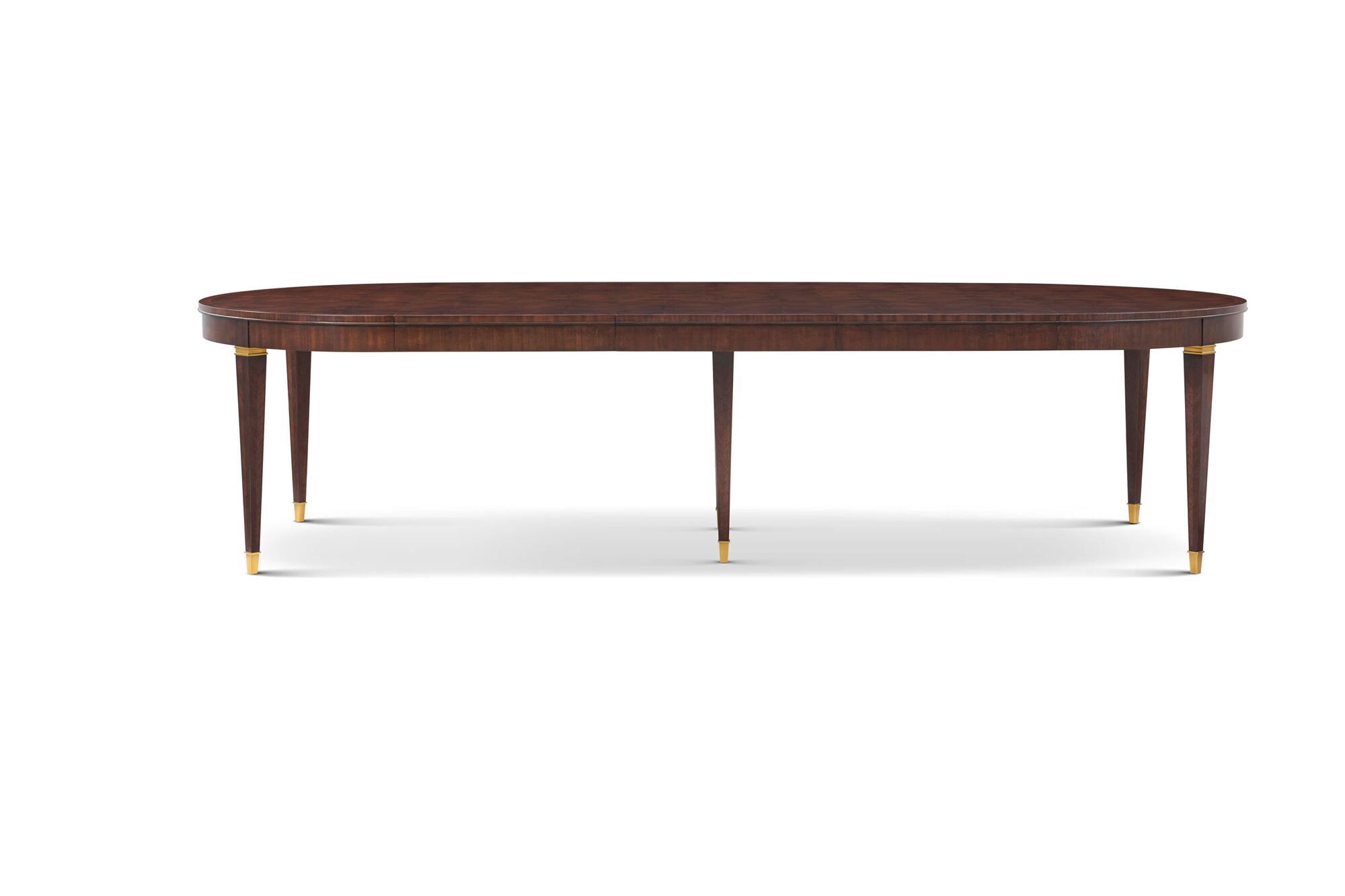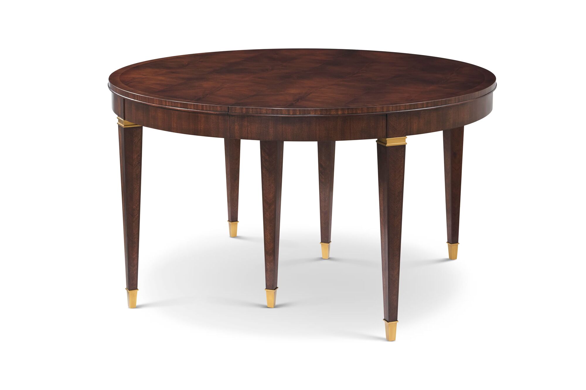 Home » Dining Room » 52-124 Inch Round to Oval Shelley Dining Table with Brass Accent and Leg Caps