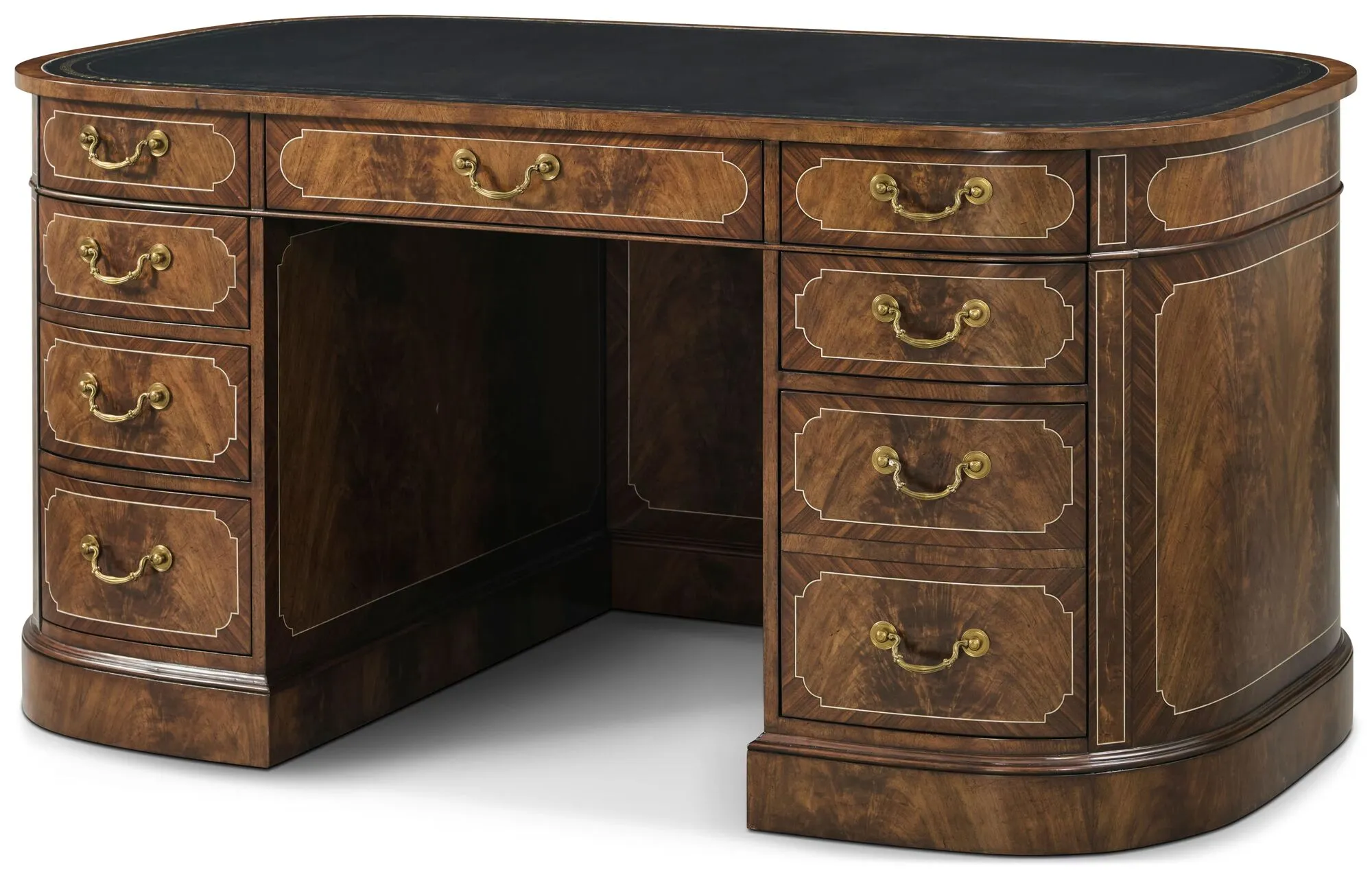 Home » Dining Room » Walnut Leather Top Sloane Desk 7 Drawers with Brass Hardware Pull-out File