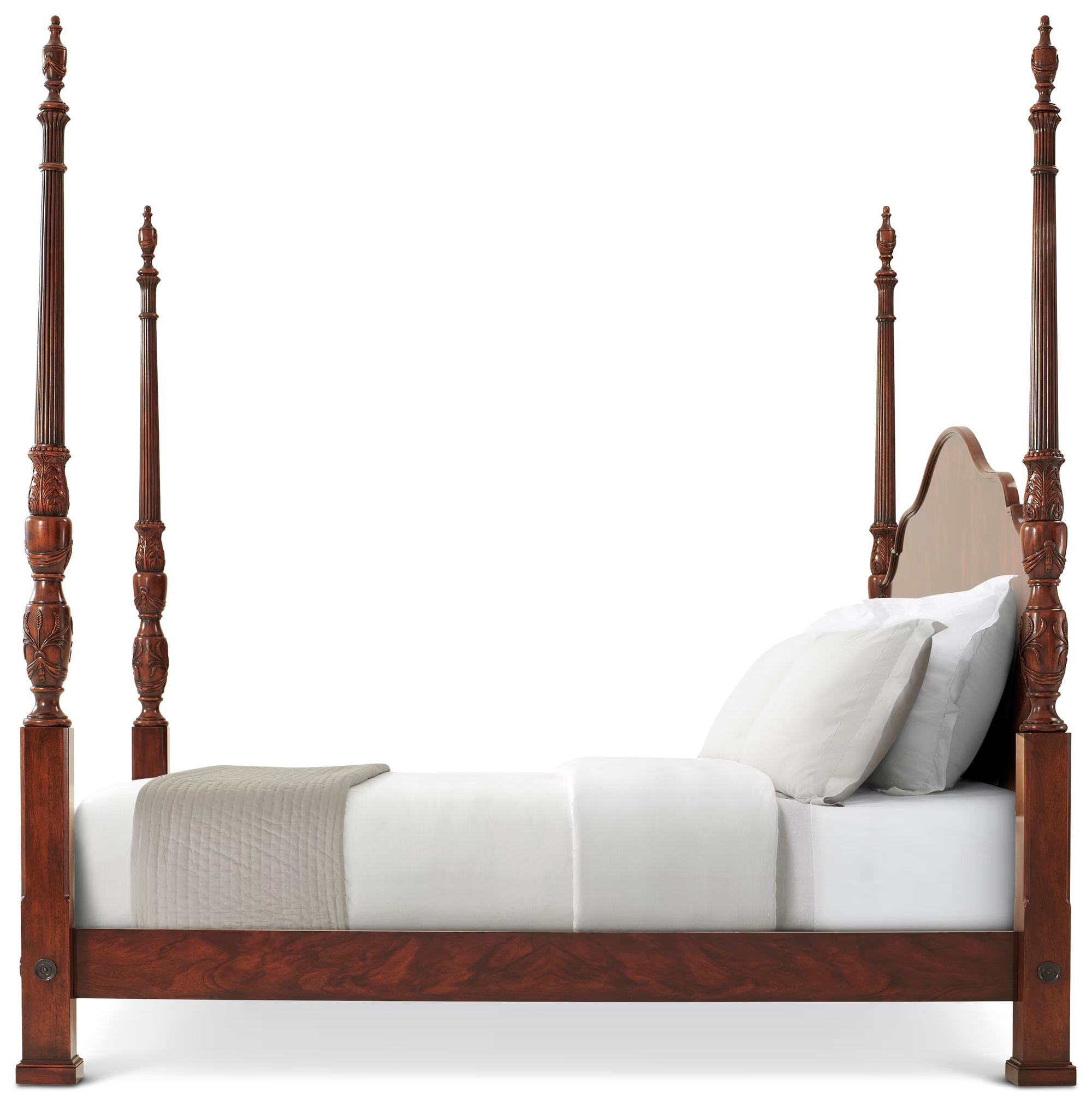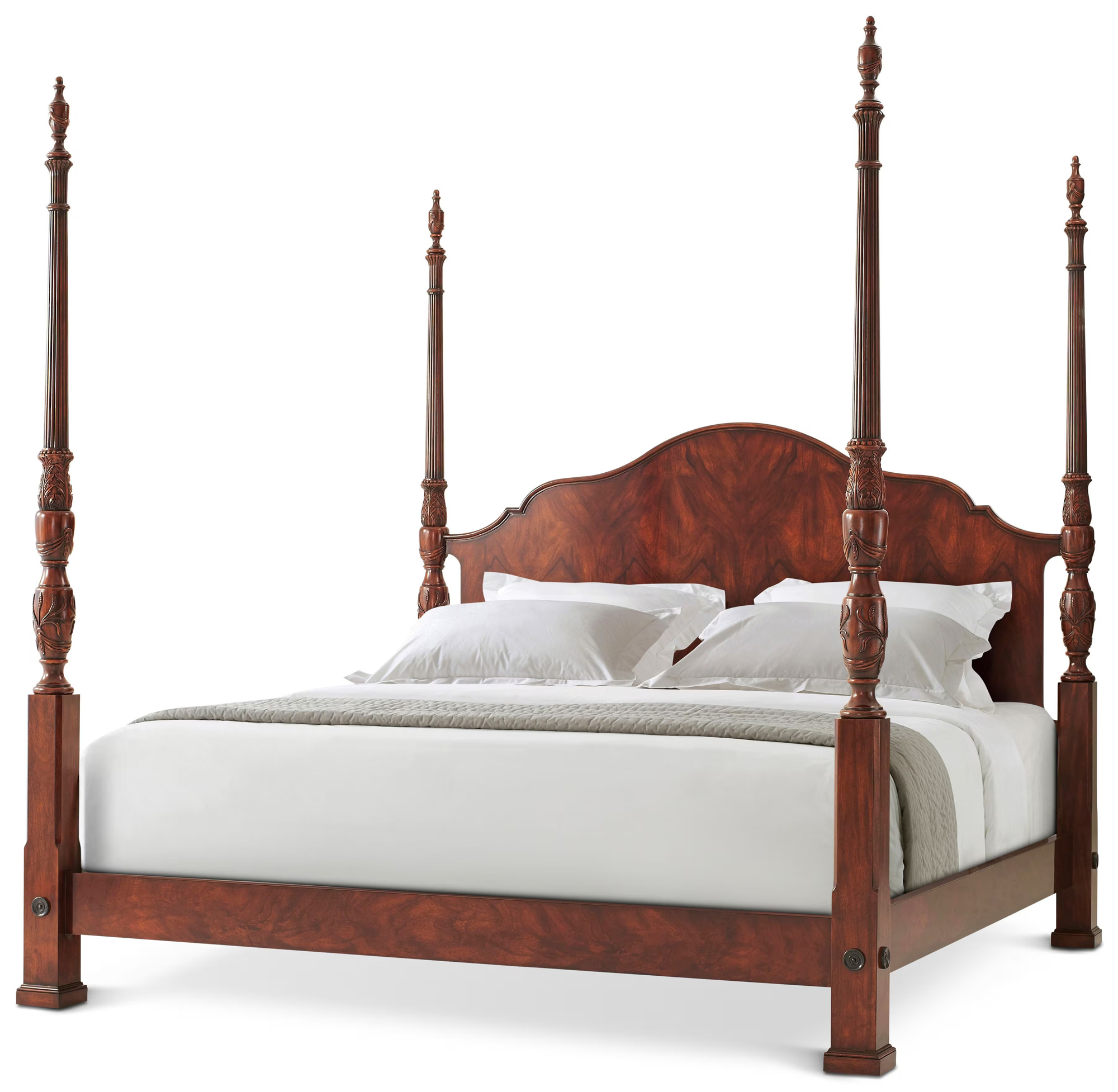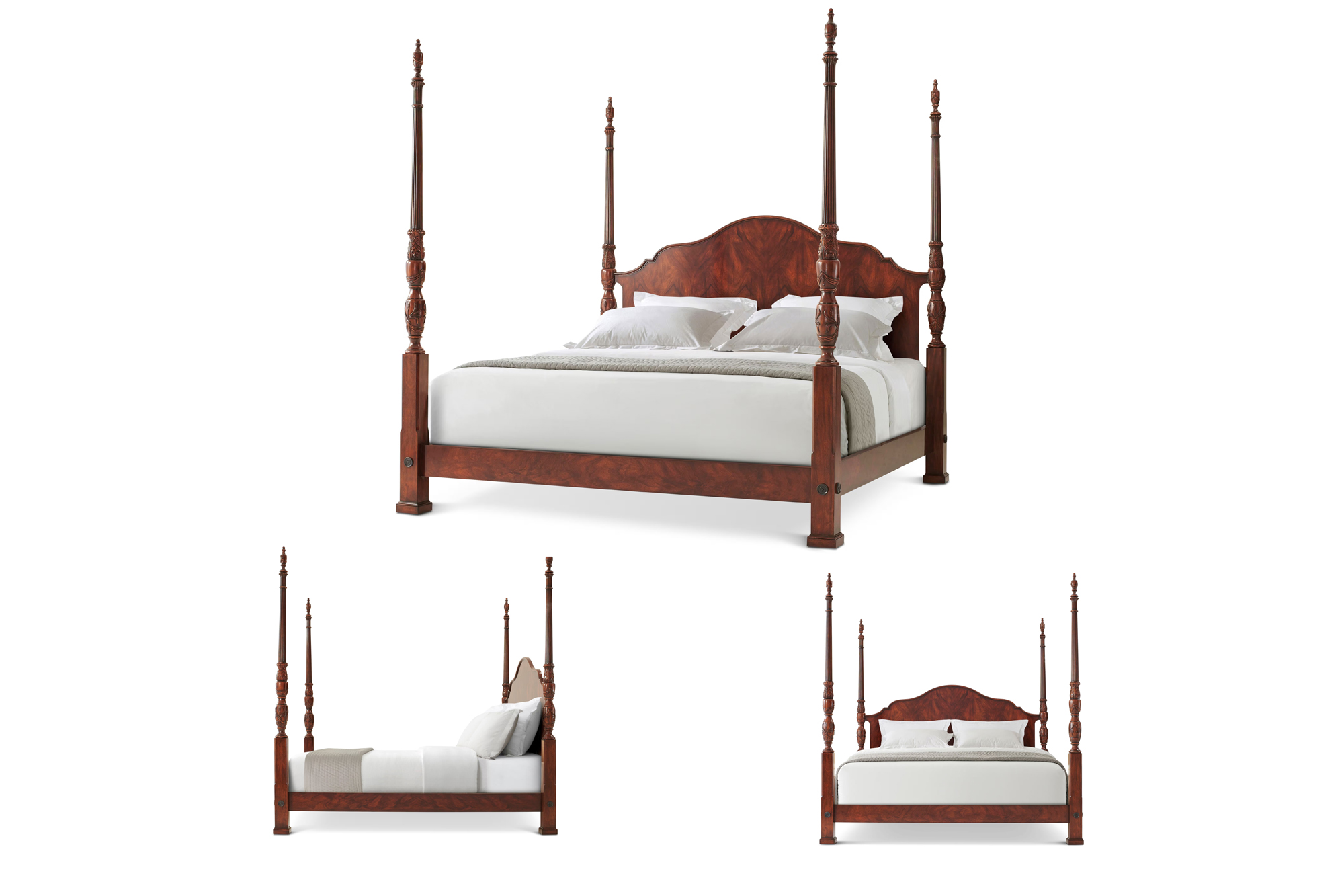 US king-size rice bed featuring finely turned rice posts and a softly weathered finish. The paneled headboard and footboard present classic proportions inspired by traditional English