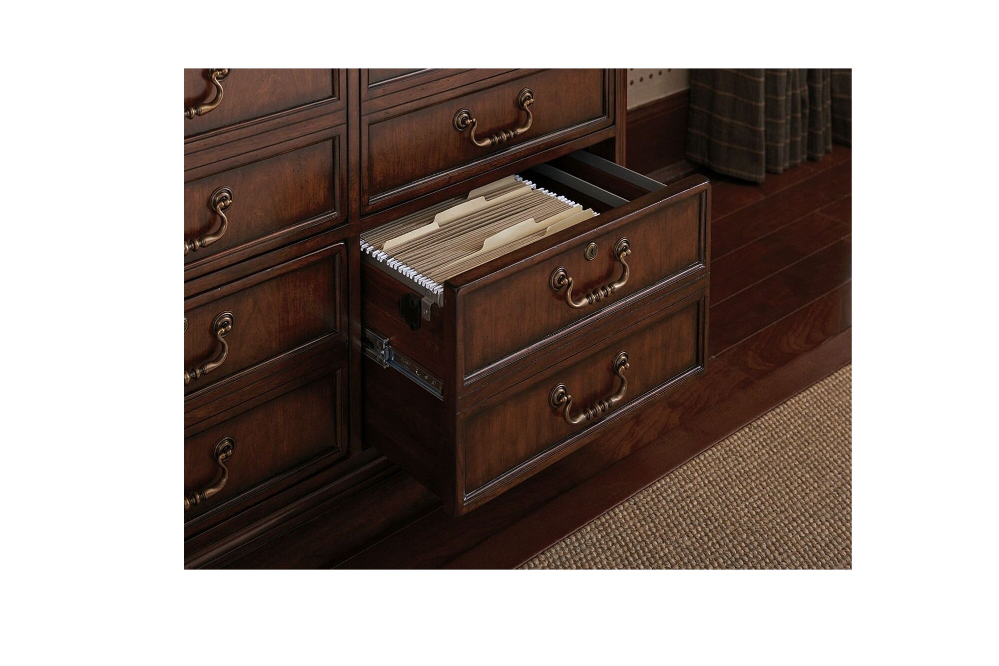 Home » Dining Room » Traditional Cherry Chest Four Lockable File Drawers, Brass Finished Hardware