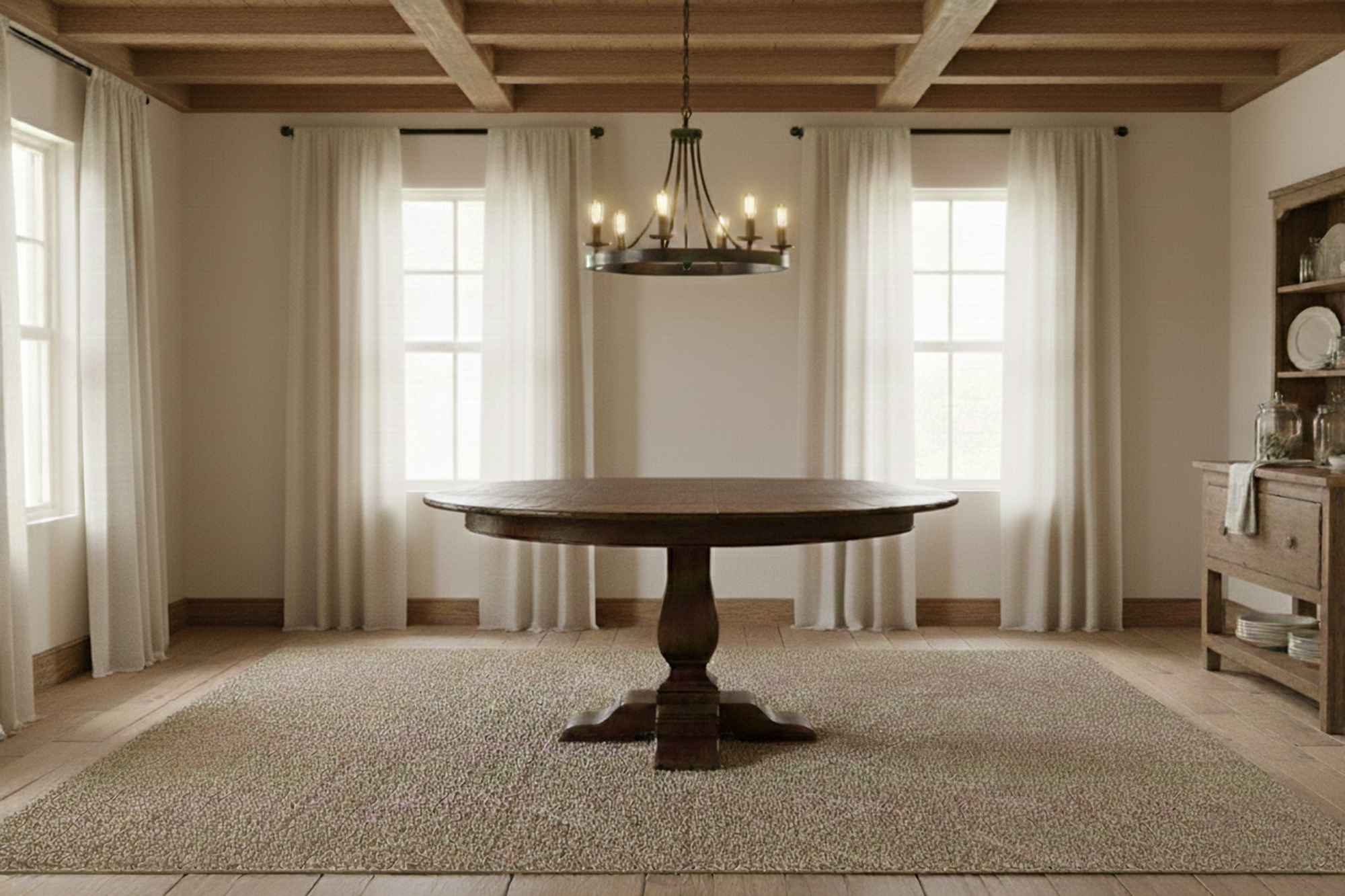 Home ยป Dining Room ยป 48-56 Inch Recaimed Knotty Oak Jupe Table-Victory Oak Jupe Dining Table