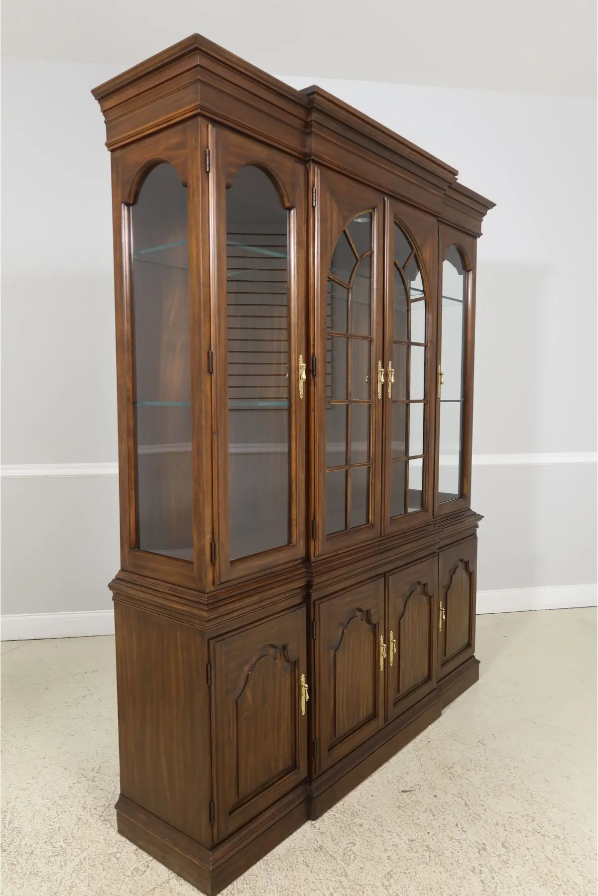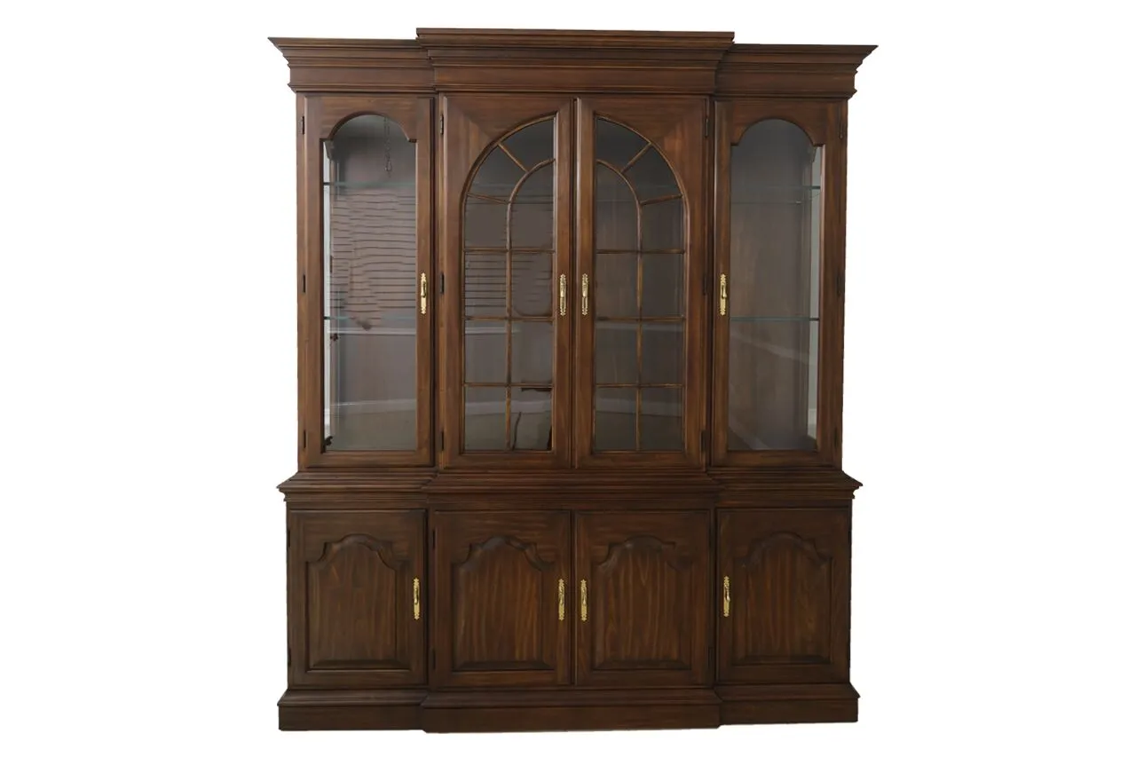 Solid Cherry China Cabinet with Arched Windows & Raised Paneled Doors