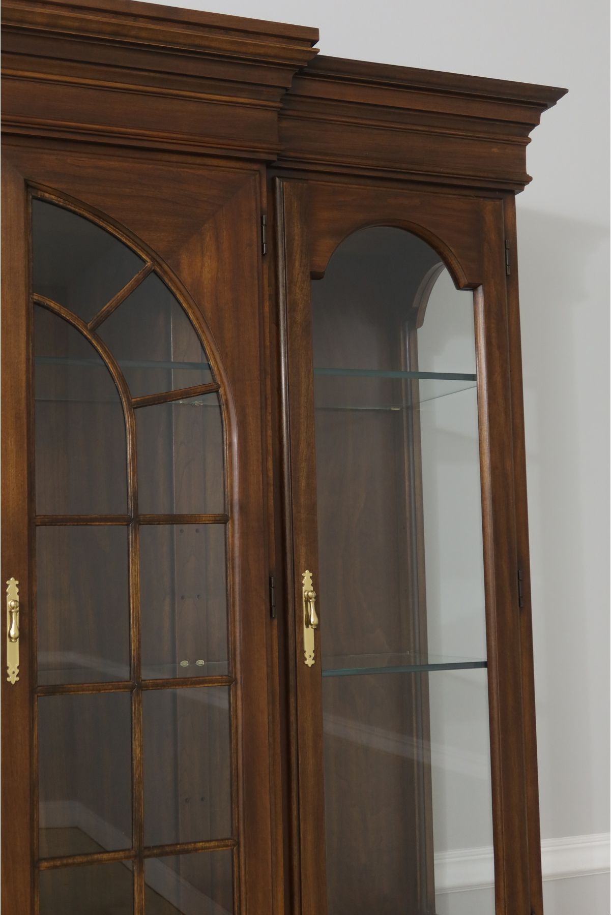 Vintage solid cherry china cabinet with 4 arched windows atop 4 raised paneled doors. This is an American-made display cabinet.