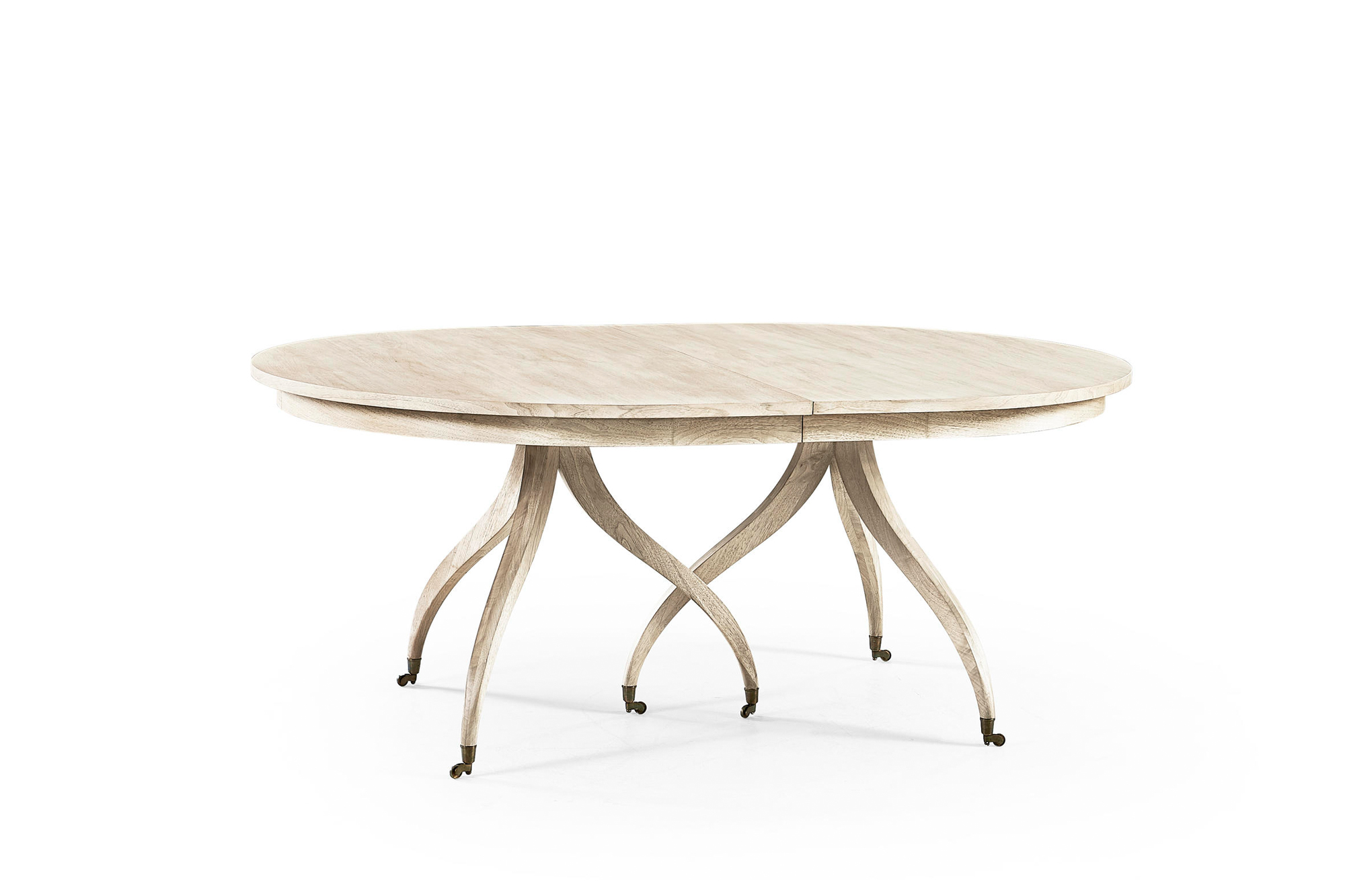 Perched atop sinuous, flowing legs, the solar spider leg dining table from Jonathan Charles Timeless portfolio features an elegant and functional design. A thirsty stripped finish showcases the unique aging qualities of walnut veneers for a visually inspiring modern aesthetic. Removable leaves give the option to extend up to 112 inches for grand gatherings.